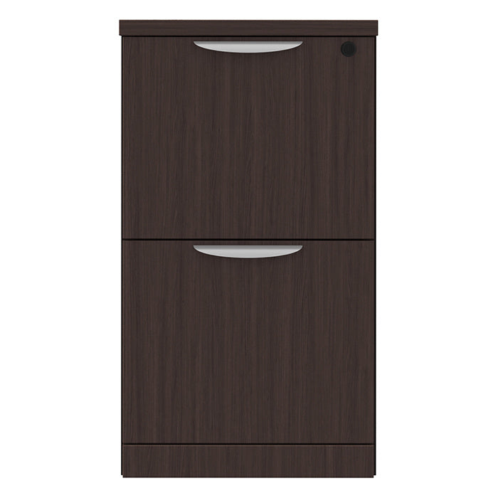 The Locking Mobile 2-Drawer Pedestal File offers two secure drawers and recessed casters for smooth movement. Ideal for home or professional offices, it is built with robust steel ball-bearing drawer glides and finished with durable commercial-grade laminate available in six color options.