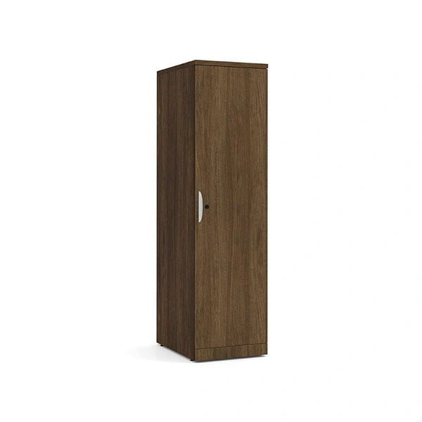 This space-efficient Personal Wardrobe Cabinet offers a hanging rod and four adjustable shelves for versatile storage. Select from six distinctive finishes with a coordinating laminate door or opt for the upgraded frosted glass door for a refined appearance.