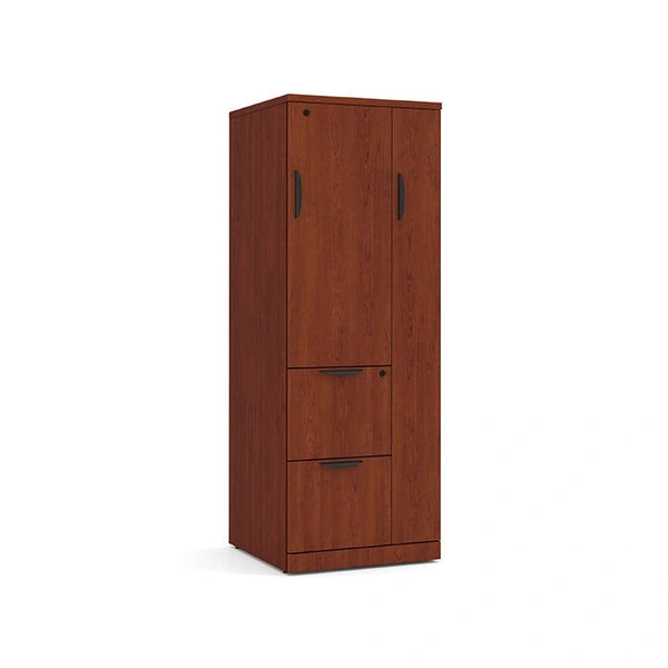 The wardrobe and storage cabinet provides a classy addition to any office. Pre-assembled, just add hardware.